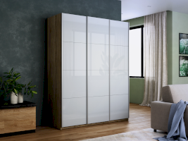 Шкаф-купе 3-х дверный Прайм Белое стекло/Белое стекло/Белое стекло 1800х2300х570 мм Сонома