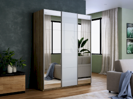 Материал двери: ЛДСП 10 мм + Белое стекло + Зеркало