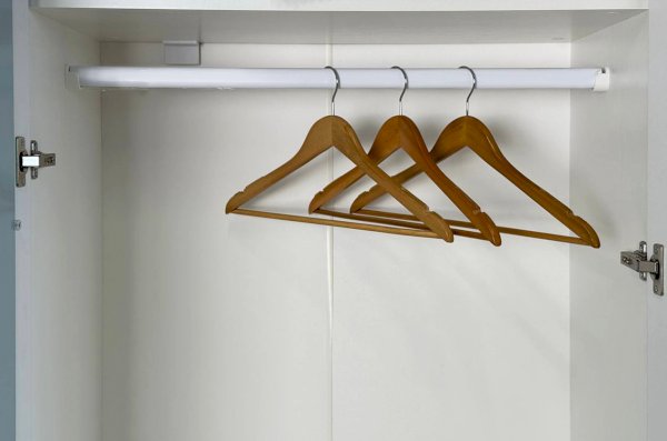 — справа установлена длинная штанга для плечиков, удобная для хранения одежды на вешалках.