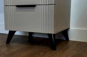 Трюмо изготовлено из качественных материалов: корпус выполнен из ЛДСП, что гарантирует прочность и долговечность, а фасад из МДФ в плёнке ПВХ не только выглядит эстетично, но и защищает трюмо от повреждений. Особое внимание заслуживает фрезеровка фасадов, которая придаёт изделию изысканный вид.