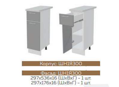 Глубина верхних шкафов: 300 мм